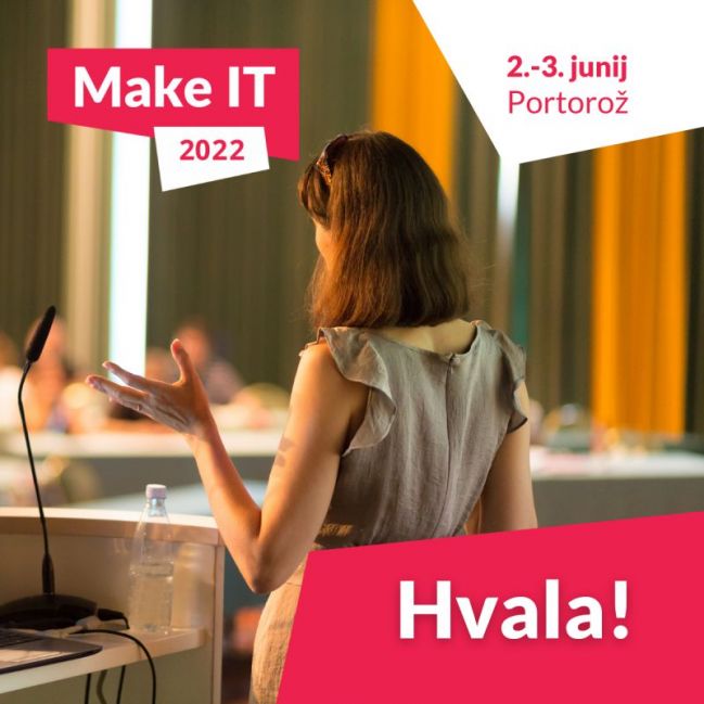 Oddaja prispevkov za IT razvojno konferenco ? MakeIT 2022 je zaključena! Najlepša hvala vsem, ki ste oddali svoj prispevek? - o izboru in uvrstitvi v program konference vas bomo obvestili v naslednjih dneh.